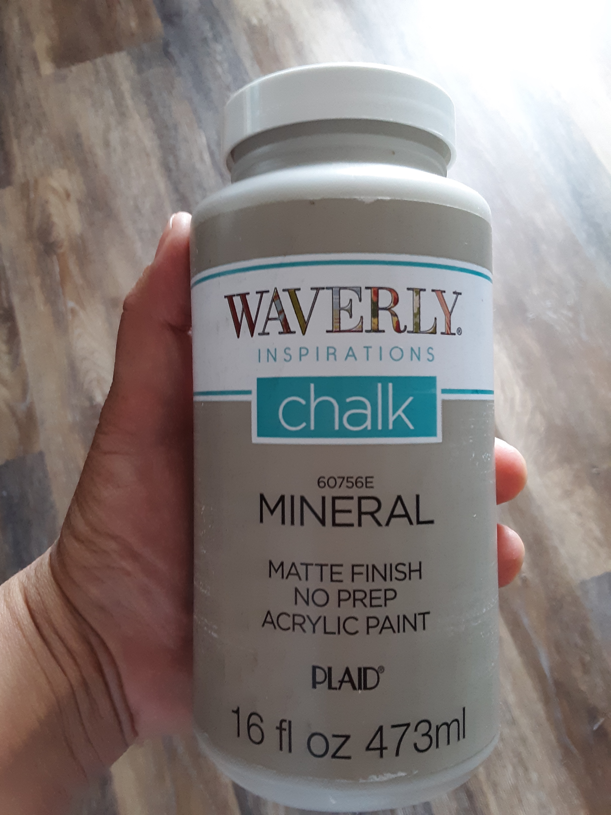 I found this greyish chalk paint color from the Wal Mart store in Arroyo Grande. The brand is called Waverly and the name of the color is Mineral.